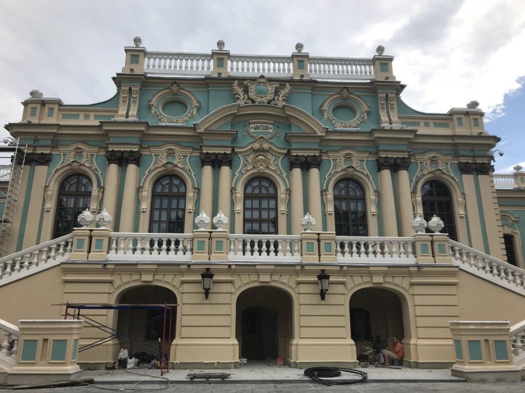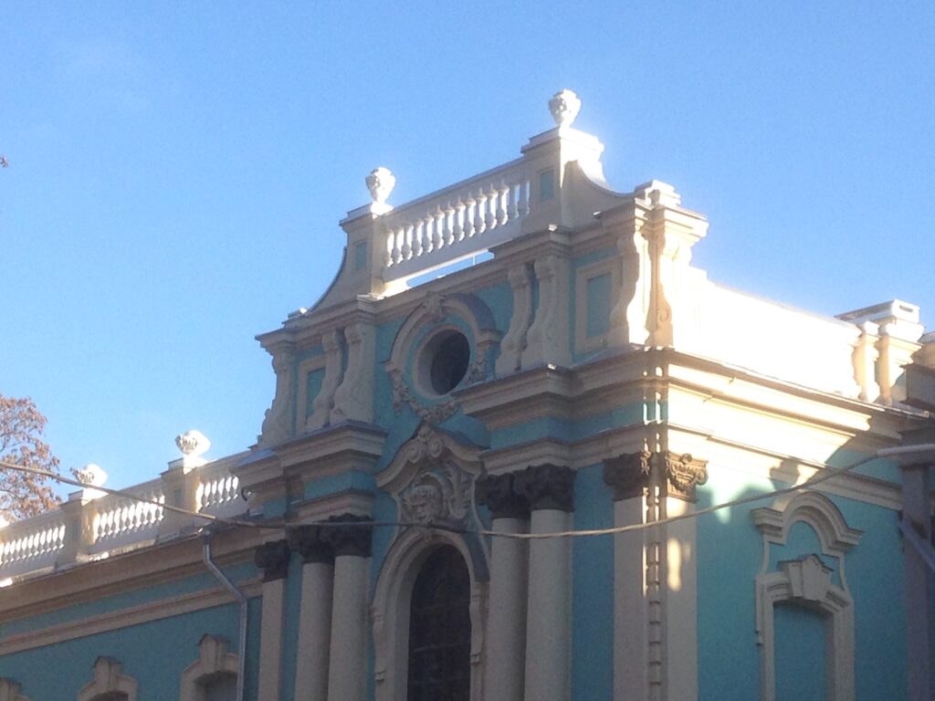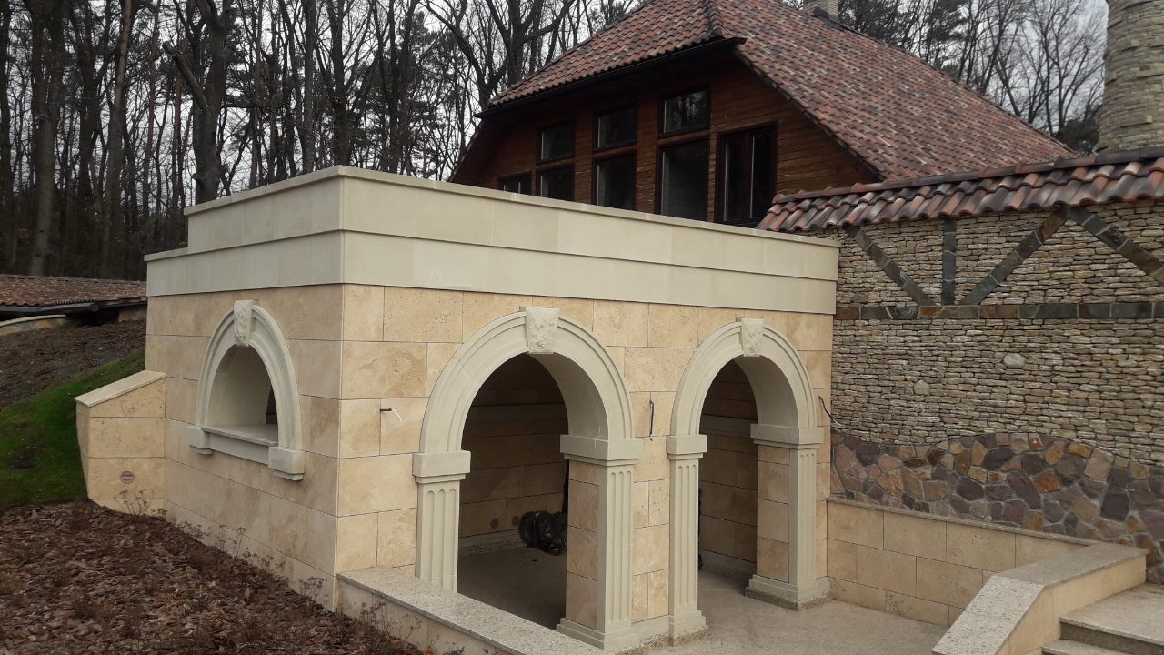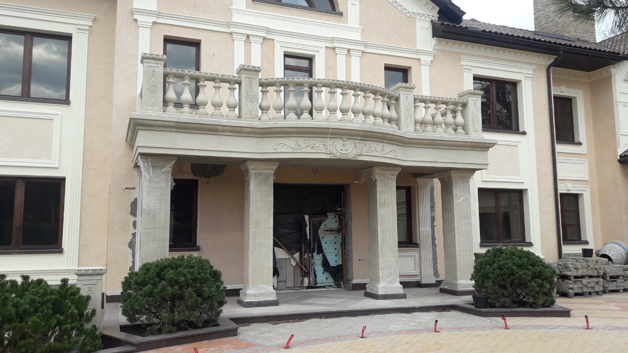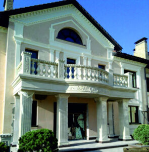 Archstone. A private house with balustrades and an entrance group with ornaments.