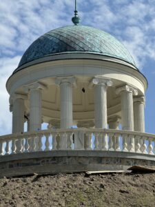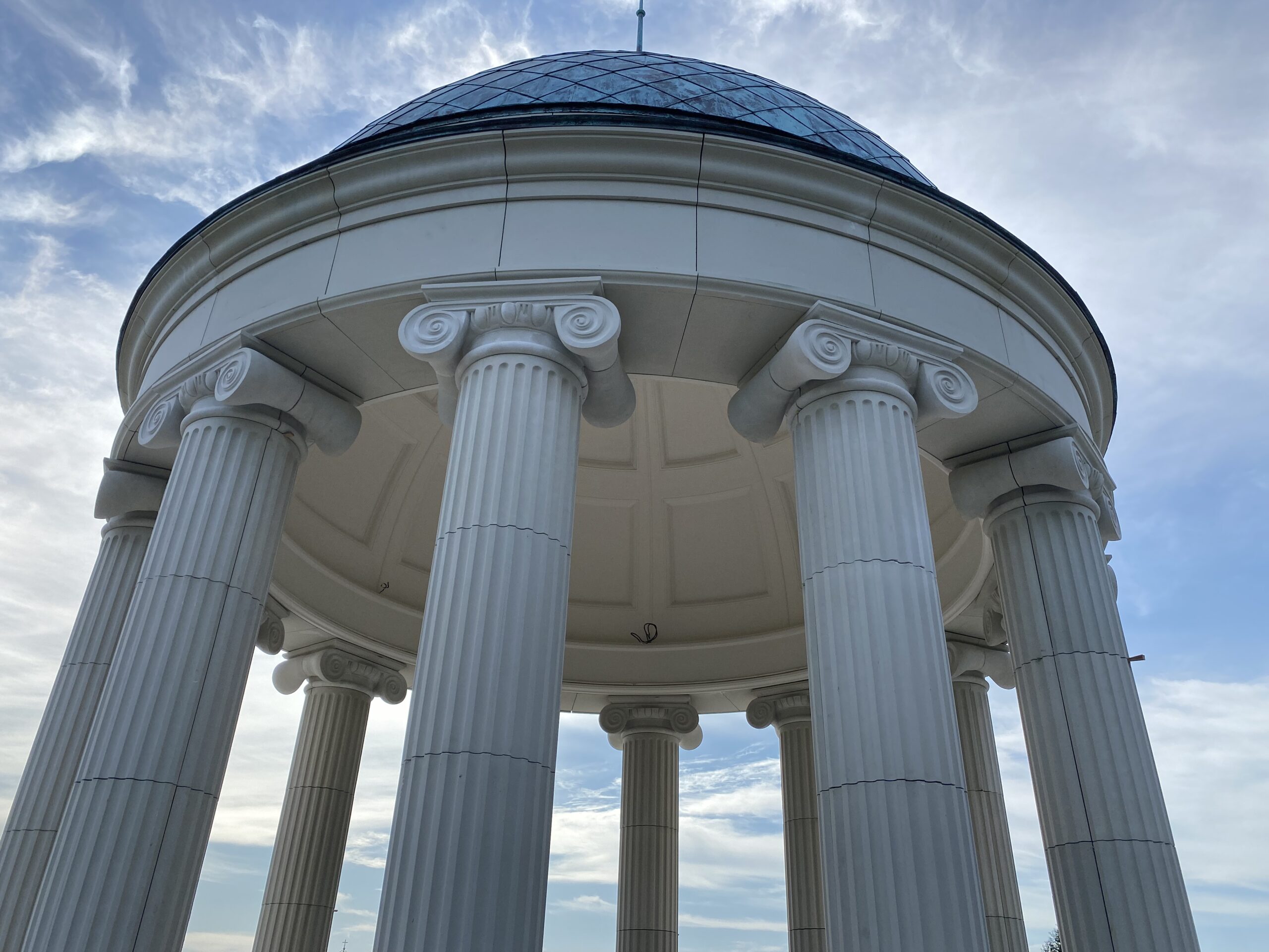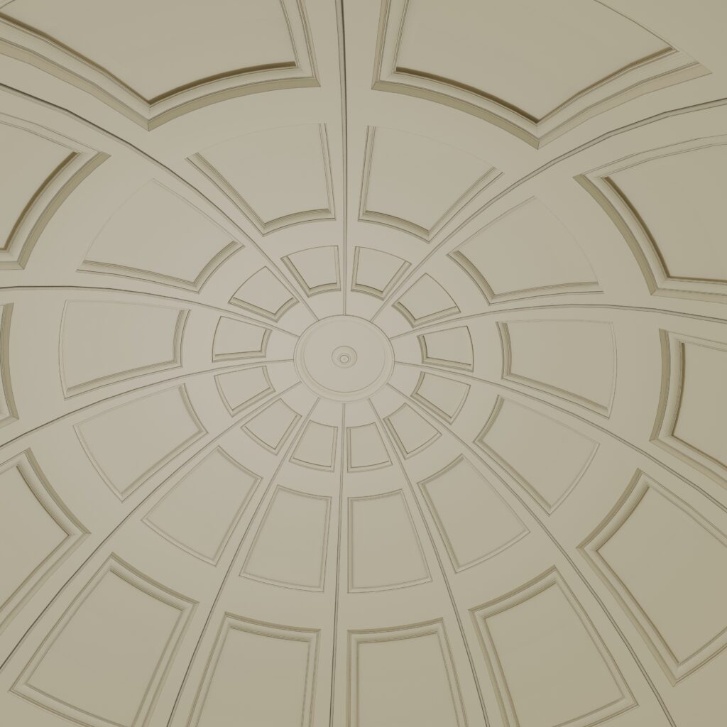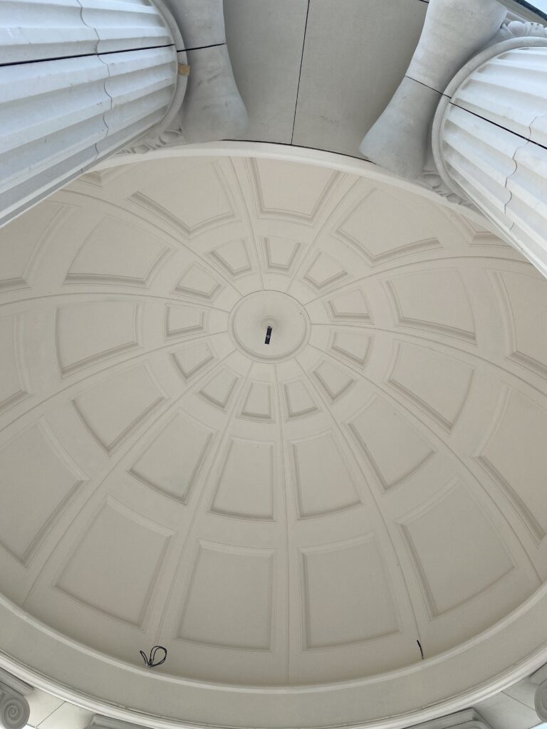 The columns and entablature of the rotunda are made of artificial stone. The dome is made of fibrous gypsum.