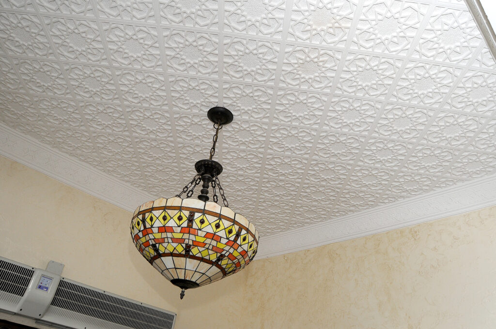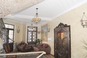 Archstone, polymer concrete, and gypsum molding. A set of works on manufacturing and installation while preserving the authenticity of the fence, urns (closed planter), and unique interior molding.