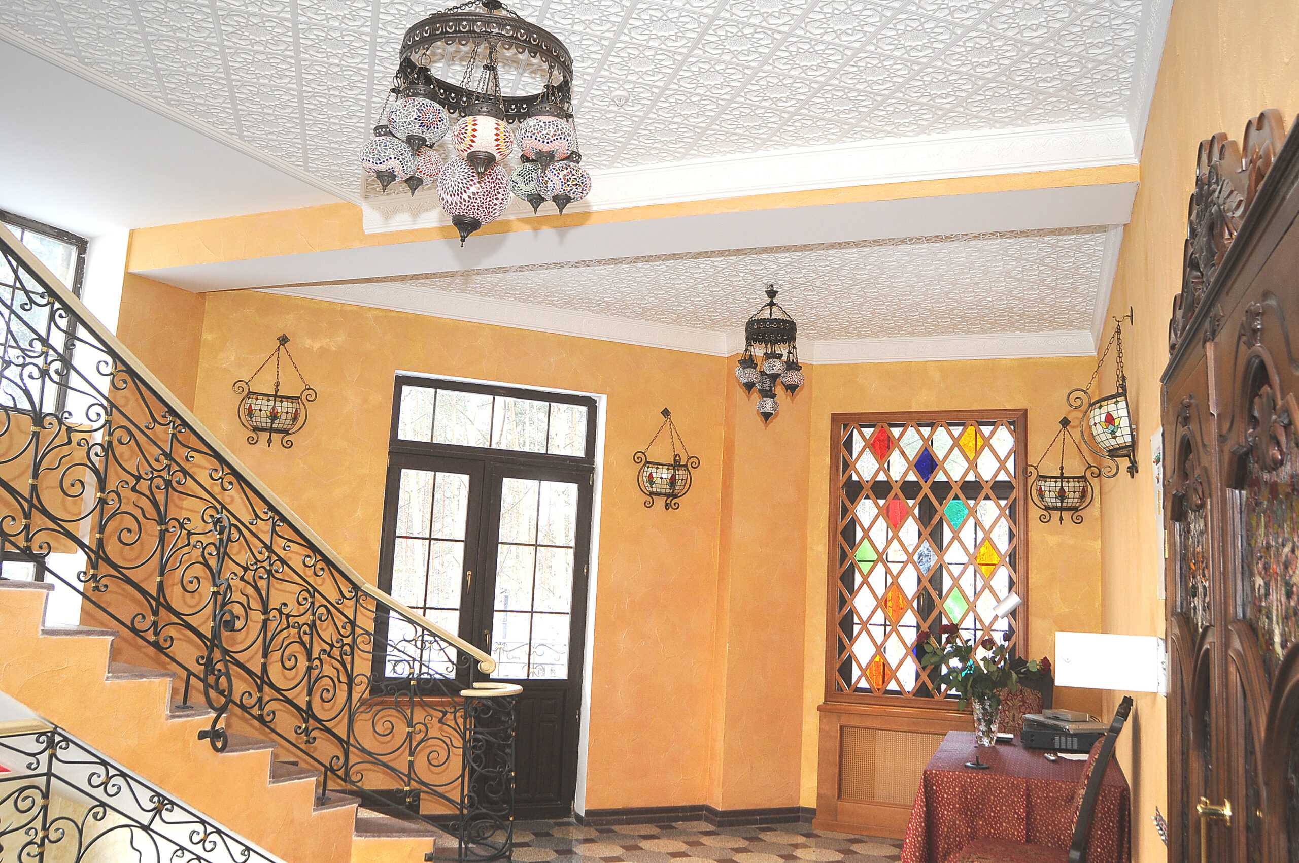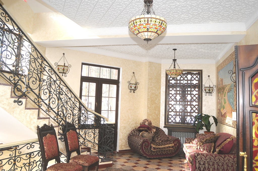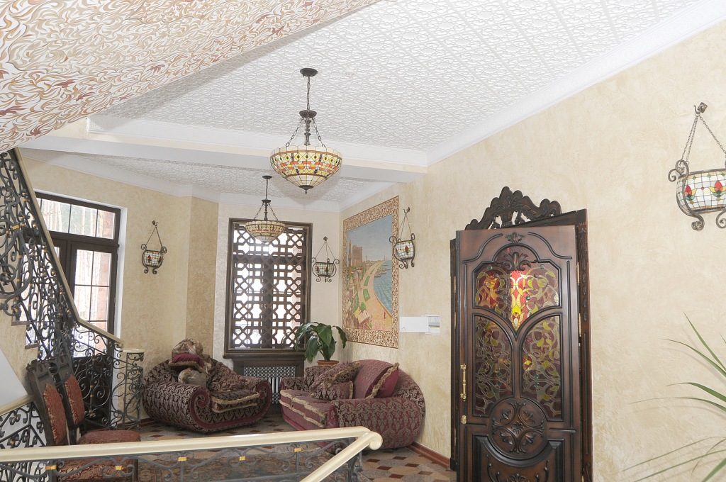 Plaster molding in the interior in a classical Arabic style. Facade decoration made of reinforced polystyrene.