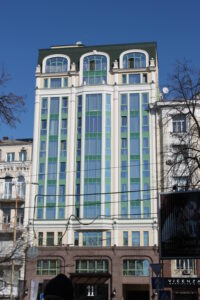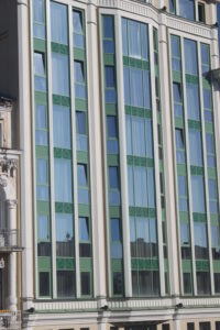 The facade of the ‘Eleven Mirrors’ hotel using polystyrene decor.